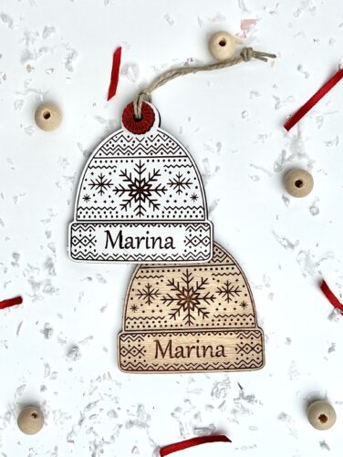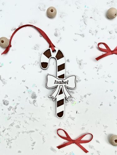 Feita em Choupo, MDF branco(estrela) e acrílico branco para o nome.