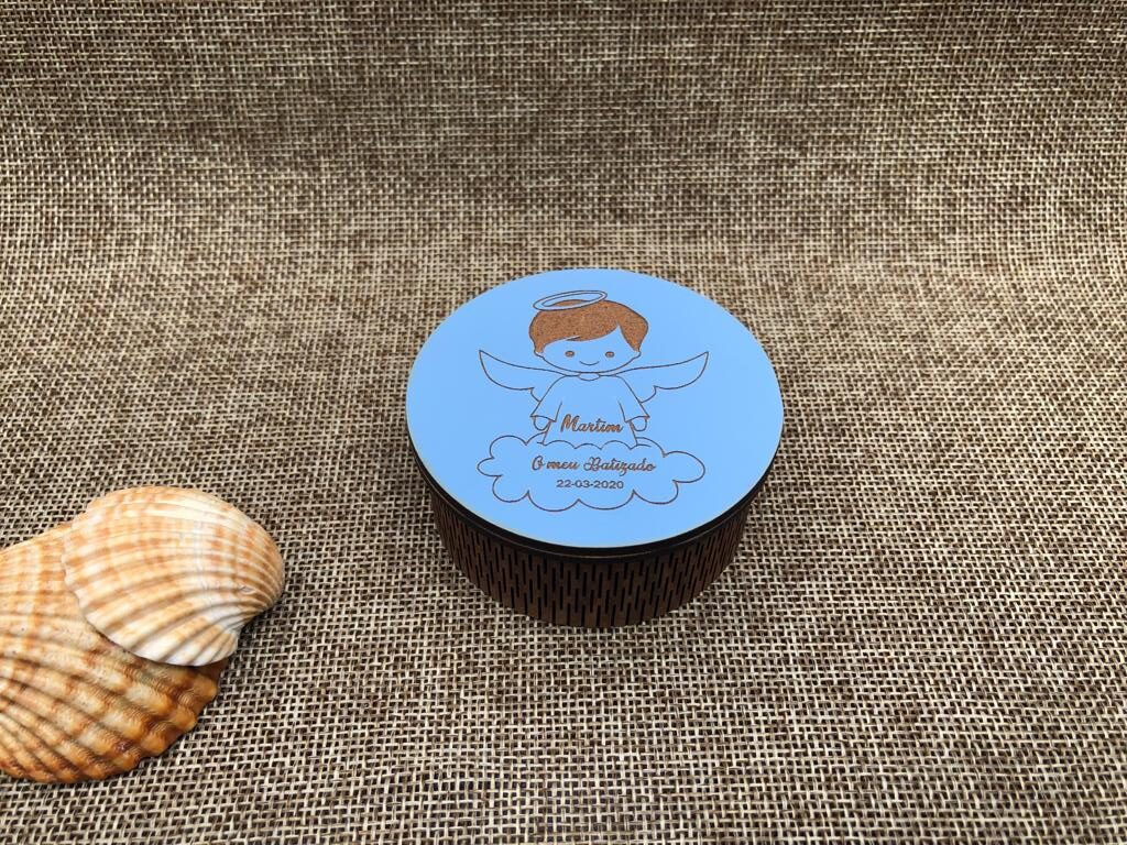 Caixa de Batizado em MDF Natural com Tampa Rosa ou Azul – Personalizada