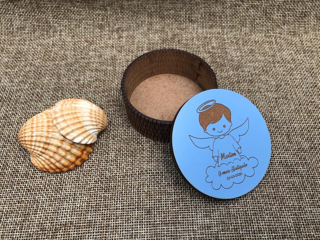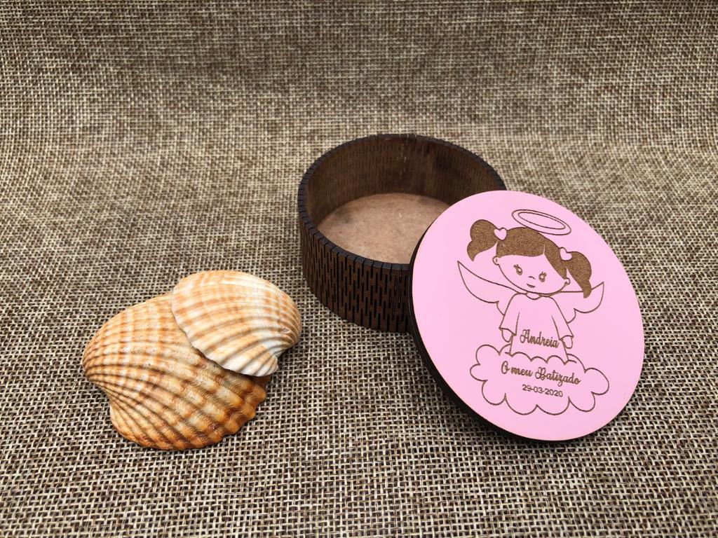Delicada e funcional, esta Caixa de Batizado é perfeita para guardar pequenos tesouros deste dia tão especial. Feita em MDF natural com tampa em MDF colorido (rosa ou azul), combina charme com personalização exclusiva.